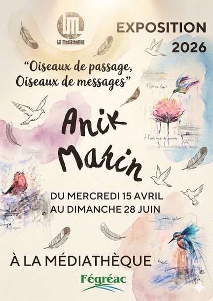 Du 15 avril au 28 juin, la médiathèque accueillera l’exposition « Oiseaux de passage, oiseaux de messages » d’Anik Marin. Le vernissage aura lieu le mercredi 29 avril à 17h30, en présence de l’artiste.